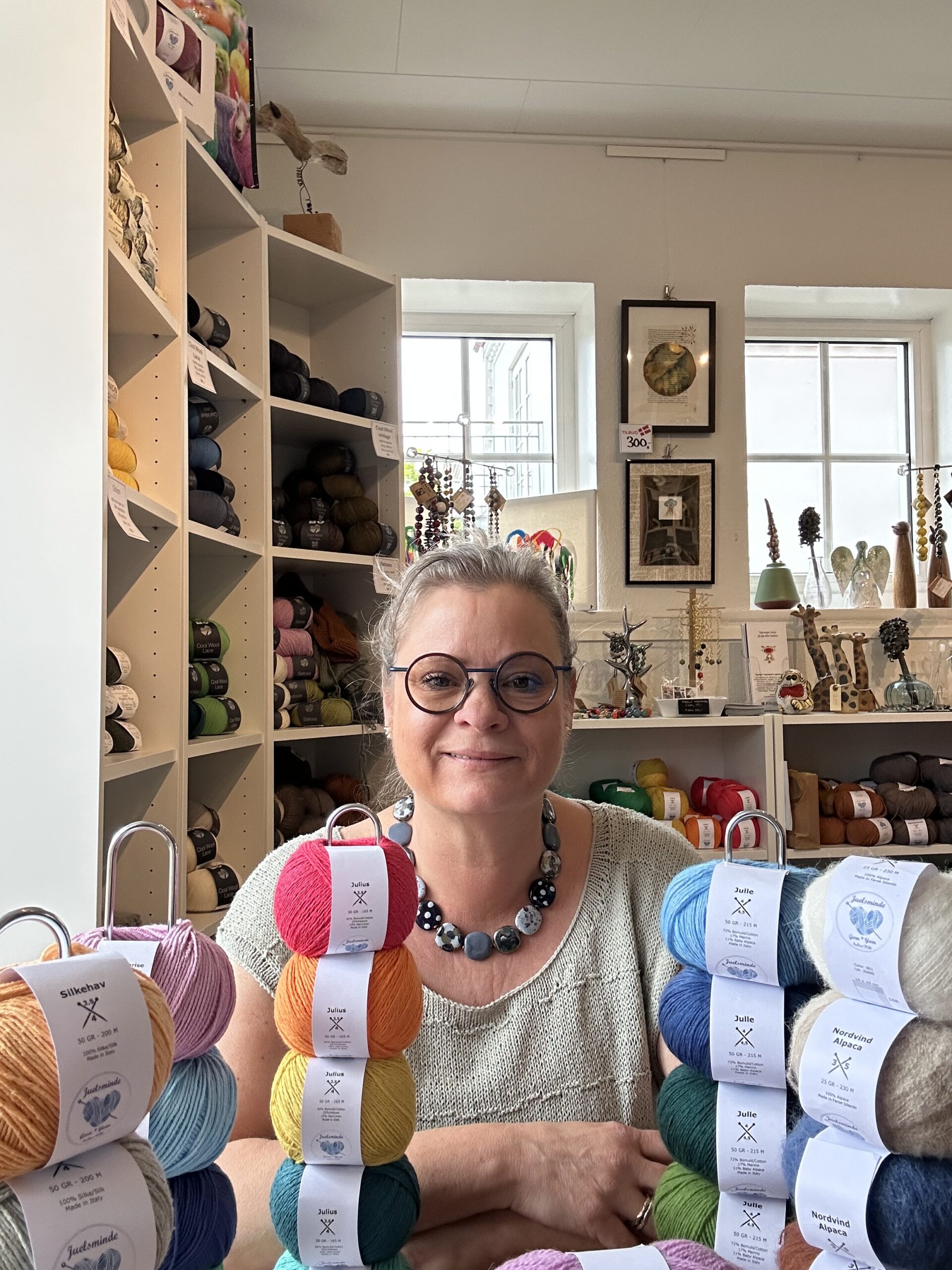 Ud over de unikke værker finder du hos Tante Fin også strikkeopskrifter og opstrikkede modeller, der afspejler hendes kreative tilgang til tekstilhåndværket. Derudover tilbyder hun Juelsminde Garn og de populære Juelsminde-håndklæder – alle med fokus på kvalitet og ægte håndværk.